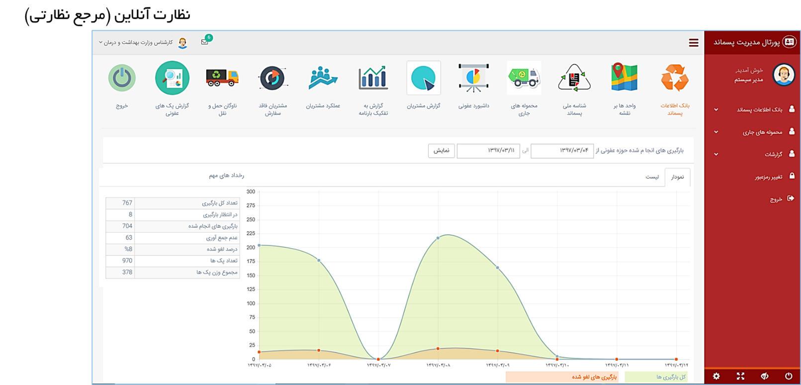 - مشاهده مراحل مختلف مدیریت پسماند به صورت لحظه ای
